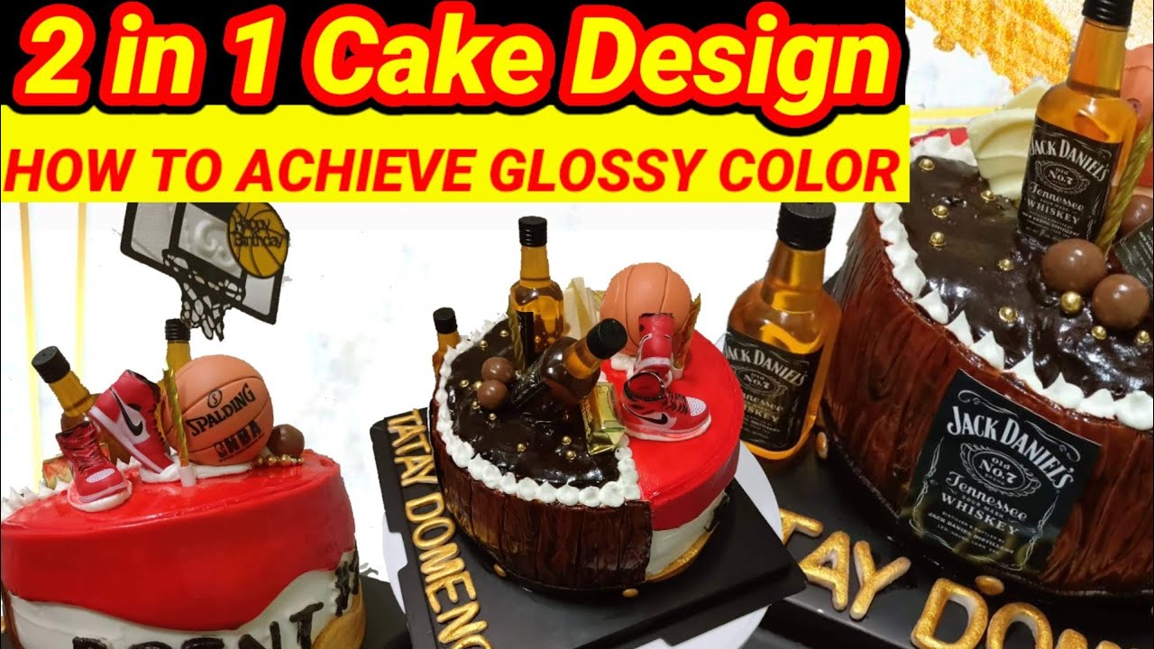 2 In 1 Cake Design How To Achieve Glossy Color Cake Jack Daniel S Theme Youtube